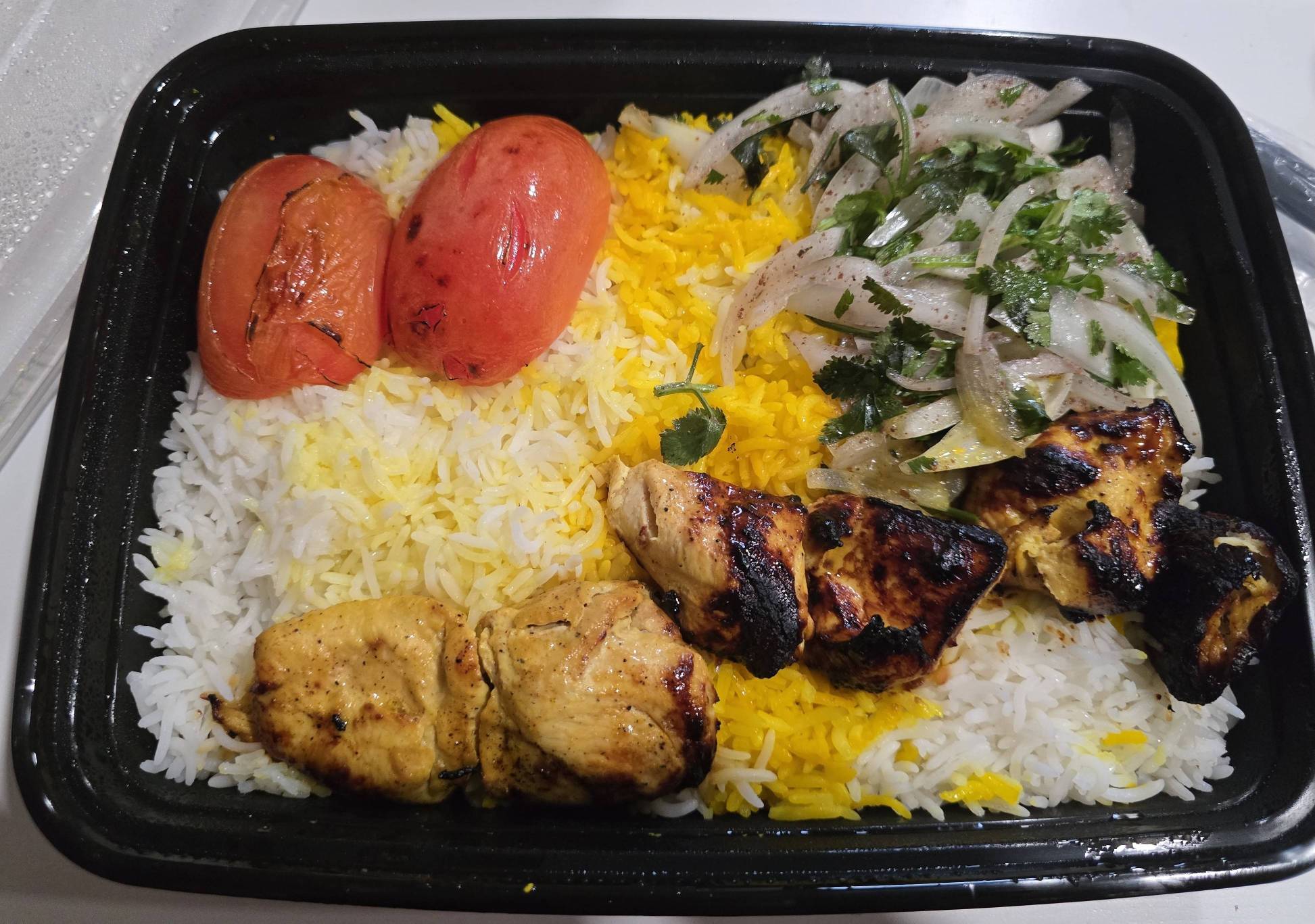 Barberry Rice Served With Chicken Thigh Kabob & Grilled Tomato